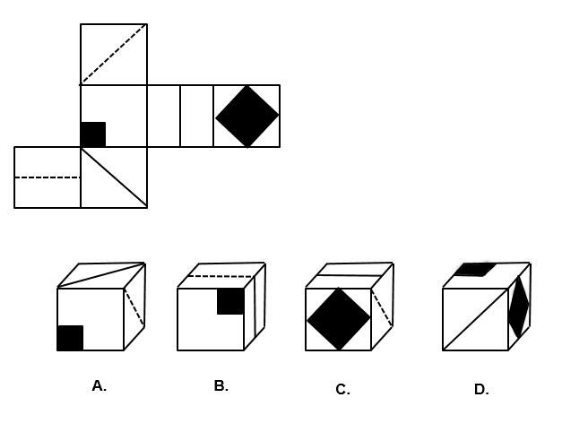 52.左邊給定的是紙盒的外表面,以下哪一項(xiàng)能由它折疊而成( )