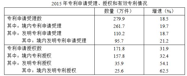 2015年,全國(guó)研究與試驗(yàn)發(fā)展經(jīng)費(fèi)支出14220億元,與國(guó)內(nèi)生產(chǎn)總值之比為2.1:100,其中基礎(chǔ)研究經(jīng)費(fèi)671億元。截至年底,全國(guó)共擁有有效專利547.8萬件,其中境內(nèi)有效發(fā)明專利87.2萬件,每萬人口境內(nèi)有效發(fā)明專利擁有量6.3件。