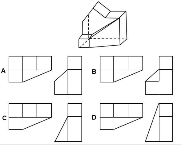 54.下邊是給定的立體圖形,以下哪一項(xiàng)是該立體圖形的俯視圖和側(cè)視圖( )