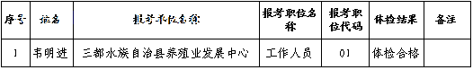 根據(jù)《三都水族自治縣2019年下半年公開引進(jìn)急需緊缺人才公告》規(guī)定,擬對(duì)體檢合格的考生進(jìn)行考察?,F(xiàn)將有關(guān)事宜公告如下:
