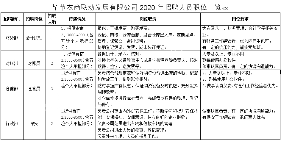 附件1:畢節(jié)農(nóng)商聯(lián)動(dòng)發(fā)展有限公司2020年招聘職位表