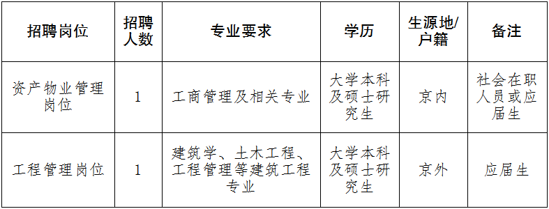 (四)應(yīng)屆生為2020年全國(guó)普通高等學(xué)校應(yīng)屆畢業(yè)生(不含定向、委培、部隊(duì)院校、兩年擇業(yè)期內(nèi)的未就業(yè)畢業(yè)生)。京內(nèi)生源應(yīng)聘人員須為北京市戶籍;京外生源應(yīng)聘人員須符合申請(qǐng)辦理在京就業(yè)落戶條件,大學(xué)本科生不超過(guò)24周歲(1995年2月1日以后出生),碩士研究生不超過(guò)27周歲(1992年2月1日以后出生)。