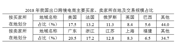 A. 2018年,我國江浙滬地區(qū)占全國出口跨境電商交易規(guī)模的比重超過1/3