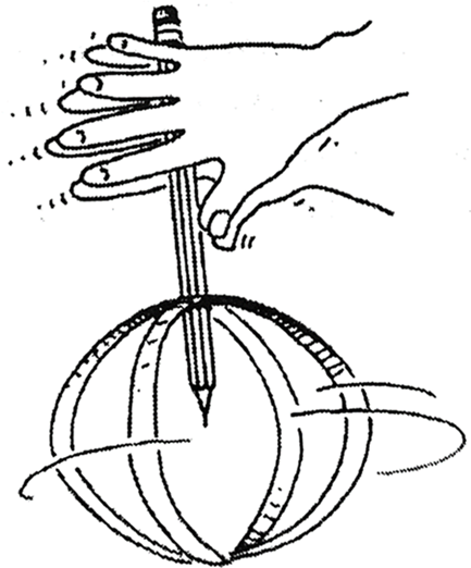 當(dāng)紙條旋轉(zhuǎn)起來之后,球體的頂端和底端會變得稍扁,而中間部分則略為鼓起。